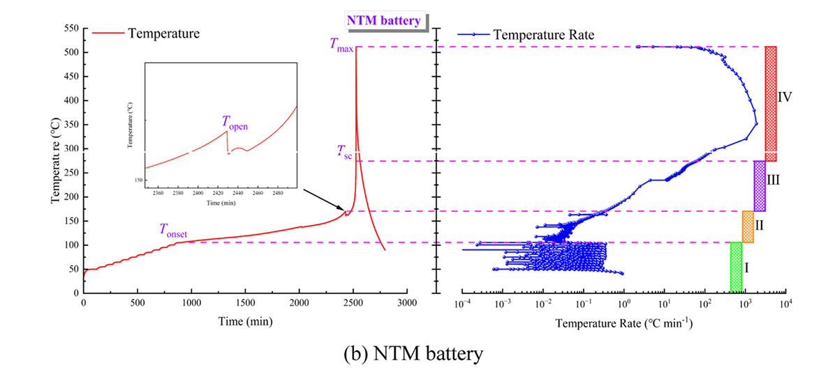 本研究使用仰仪科技小型电池绝热量热仪BAC-90A,对三种18650电池(以NaxTMO2[NTM]为阴极的钠离子电池和两种以LiFePO4[LFP]LiNi0.5Co0.2Mn0.3O2[NCM]为阴极的锂离子电池)的热失控特性及危险性进行了研究对比分析。