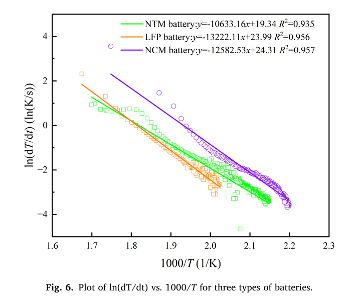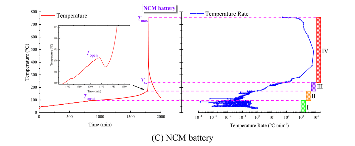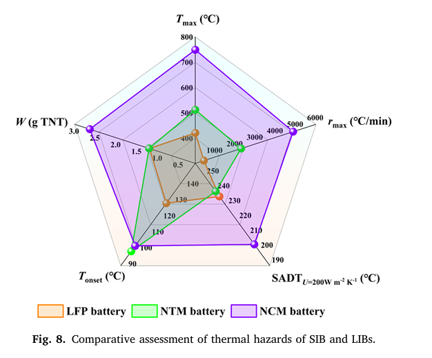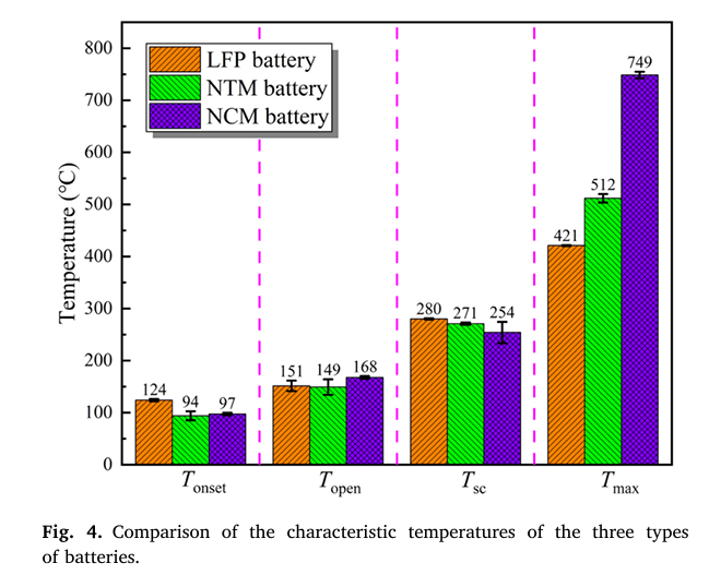 三种电池的热失控评估模型表明,热危险性顺序为NCM电池>NTM电池>LFP电池。