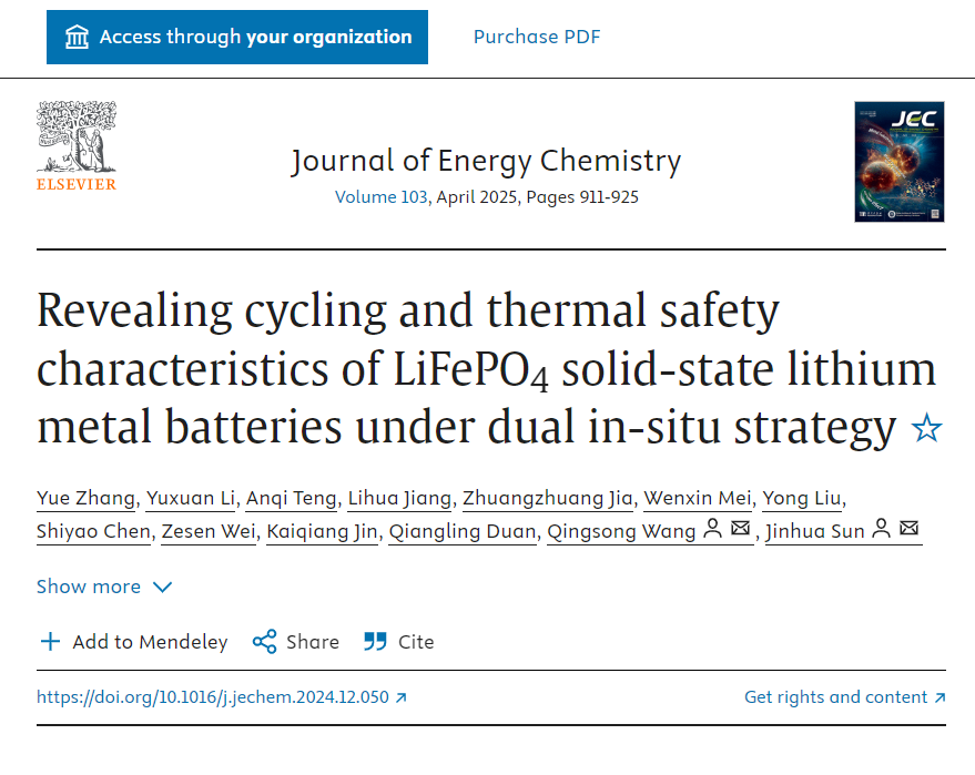 中国科学技术大学王青松教授团队在Journal of Energy Chemistry(IF:14)发表题为Revealing cycling and thermal safety characteristics of LiFePO4 solid-state lithium metal batteries under dual in-situ strategy的论文,该成果由中国科学技术大学火灾科学国家重点实验室、广东省重点领域研发计划(2024B1111080001)、国家自然科学基金(52204248和52474258)和中国科学院青年创新促进会(Y201768)等机构联合支持。